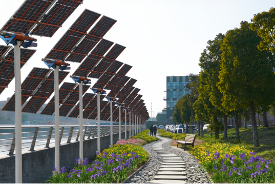 作为兴业科技自主研发的核心产品,该智能折叠追光发电系统融合天文算法、AI技术与高精度传感器,可实现双轴智能追光,较传统固定光伏发电效率提升30%-40%;这款智能光伏还凭借追踪、折叠、阴影避让等技术实力,打破行业传统光伏受限于安装场地的瓶颈,不仅可以与绿化融合,深度适配零碳园区绿电需求,更可与农作物结合,助力智慧农业发展,在农业电气化与产业规划领域作出贡献。