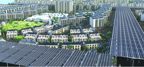 那这些问题如何解决呢?为此,我们推出了以小区或农村自然村为系统单位的社区式光伏,它既综合了分布式与集中式光伏的优点,又规避了其不足,不仅能够提供系统发电量,同时还解决了电力在长途运输中的损耗问题,并且也解决了储能问题。它是以小区或农村自然村为系统单位,将光伏与储能相结合,坚持了“四个就近原则”,即就近产能、就近用能、就近储能、就近并网,发电自发自用,余电上网,并通过介质为主进行储能,以介质能在换热系统下为居民供冷供热,实现建筑在使用过程中的零碳排放。